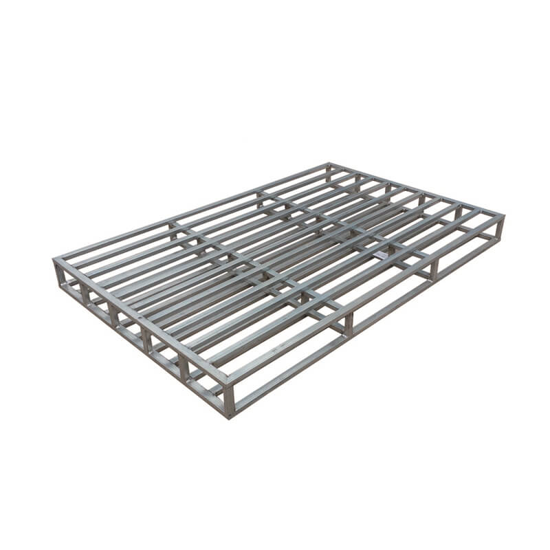 AA型直角雙面鋼托盤 產(chǎn)品編號(hào):SMTPAA1218150 產(chǎn)品自重:54kg 產(chǎn)品名稱:直角雙面托盤 產(chǎn)品載重:1500kg 產(chǎn)品規(guī)格:W1200×L1800×H150 產(chǎn)品配置:采用鍍鋅方管20*30*1.5,間隔98mm焊接。